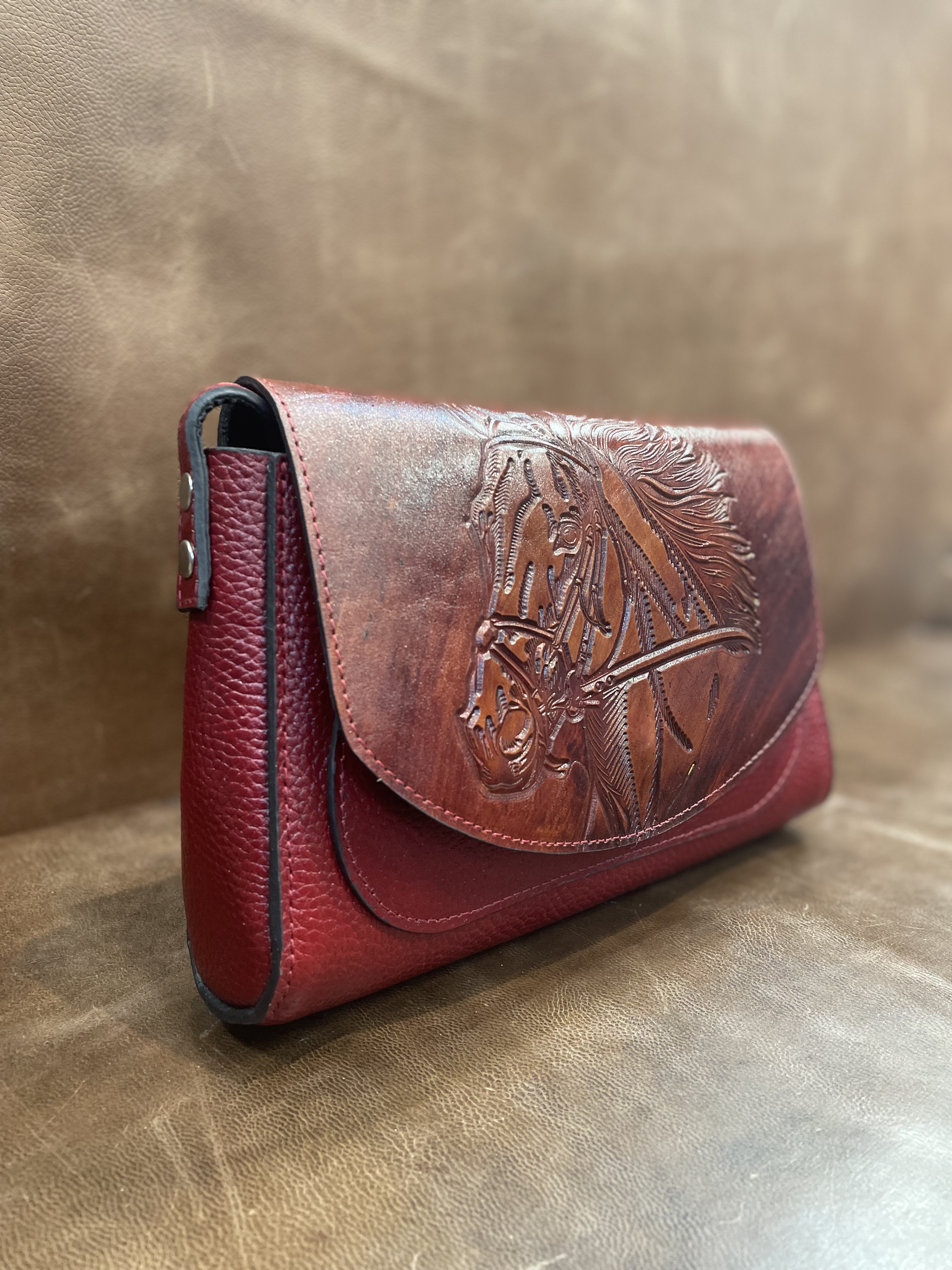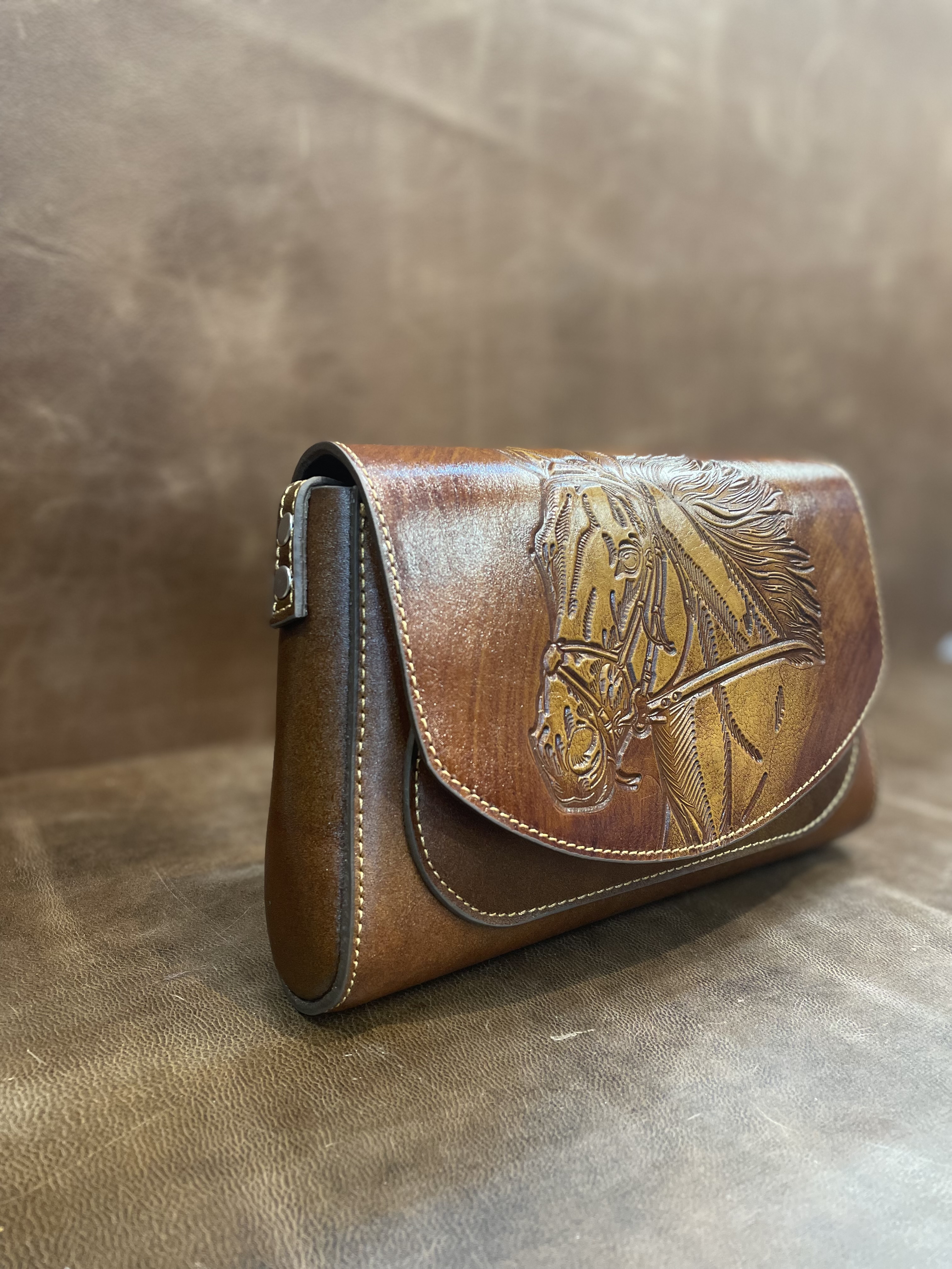 كيف دوشي چرم با حكاكي طرح اسب مدل باران-چرم گاباي