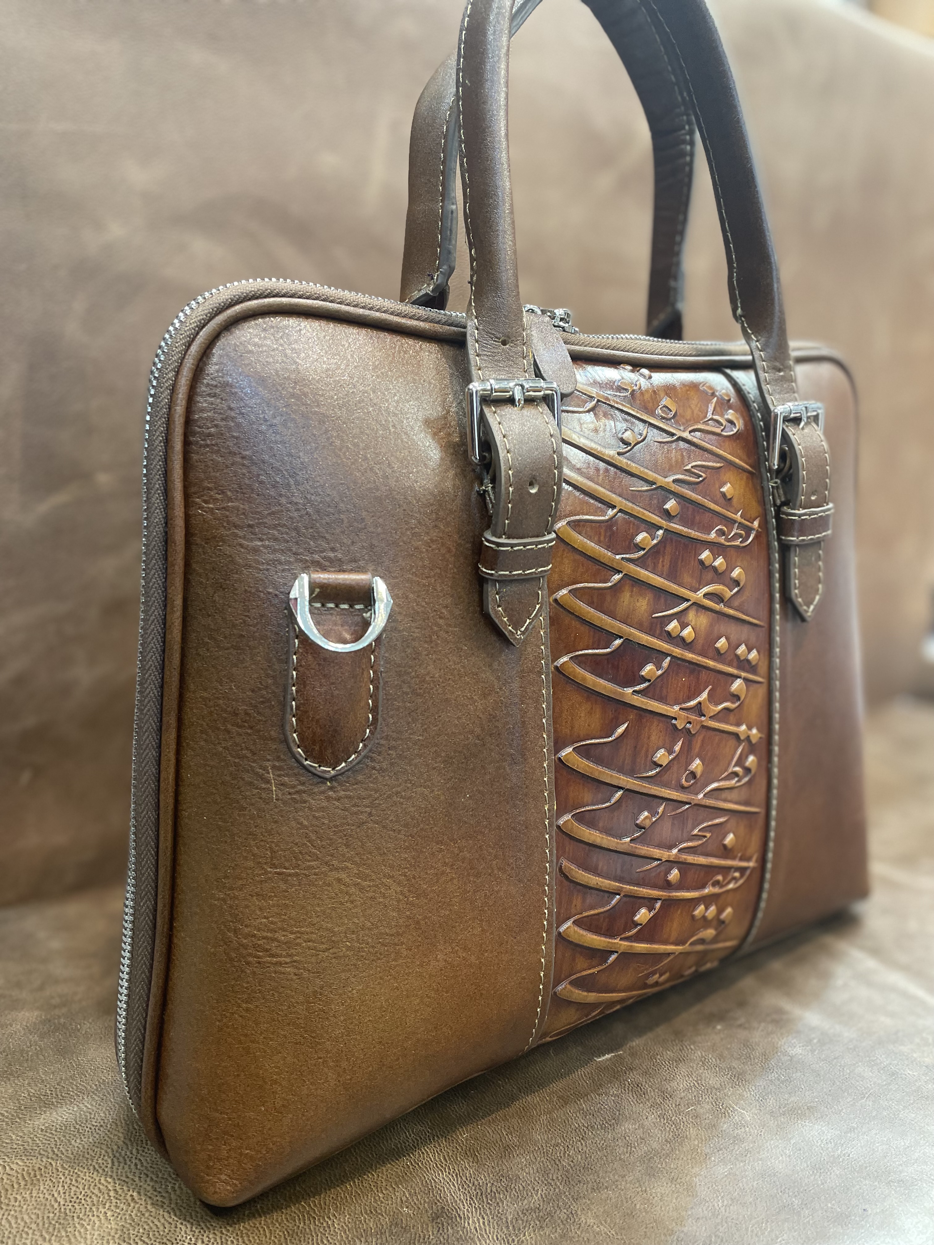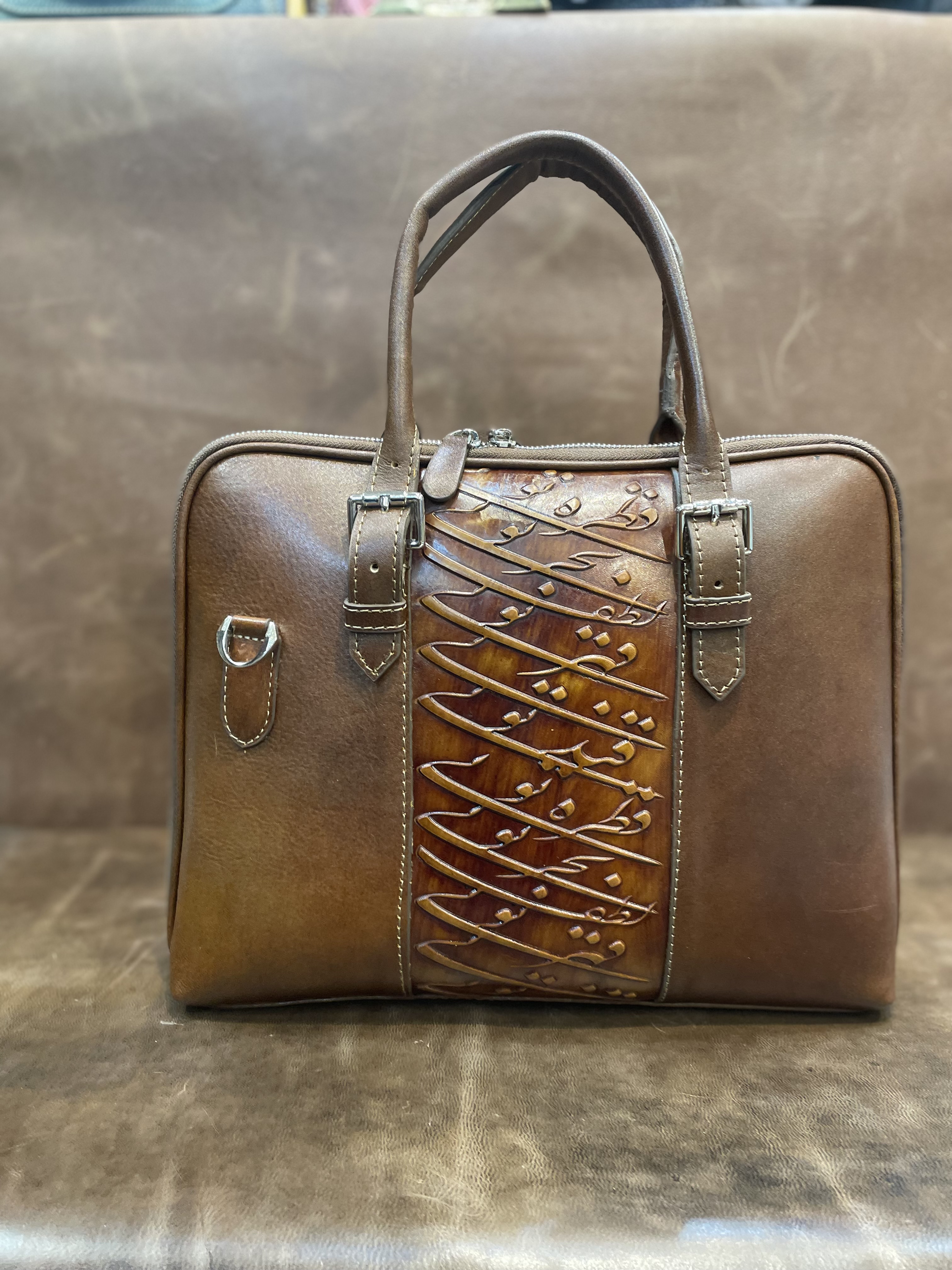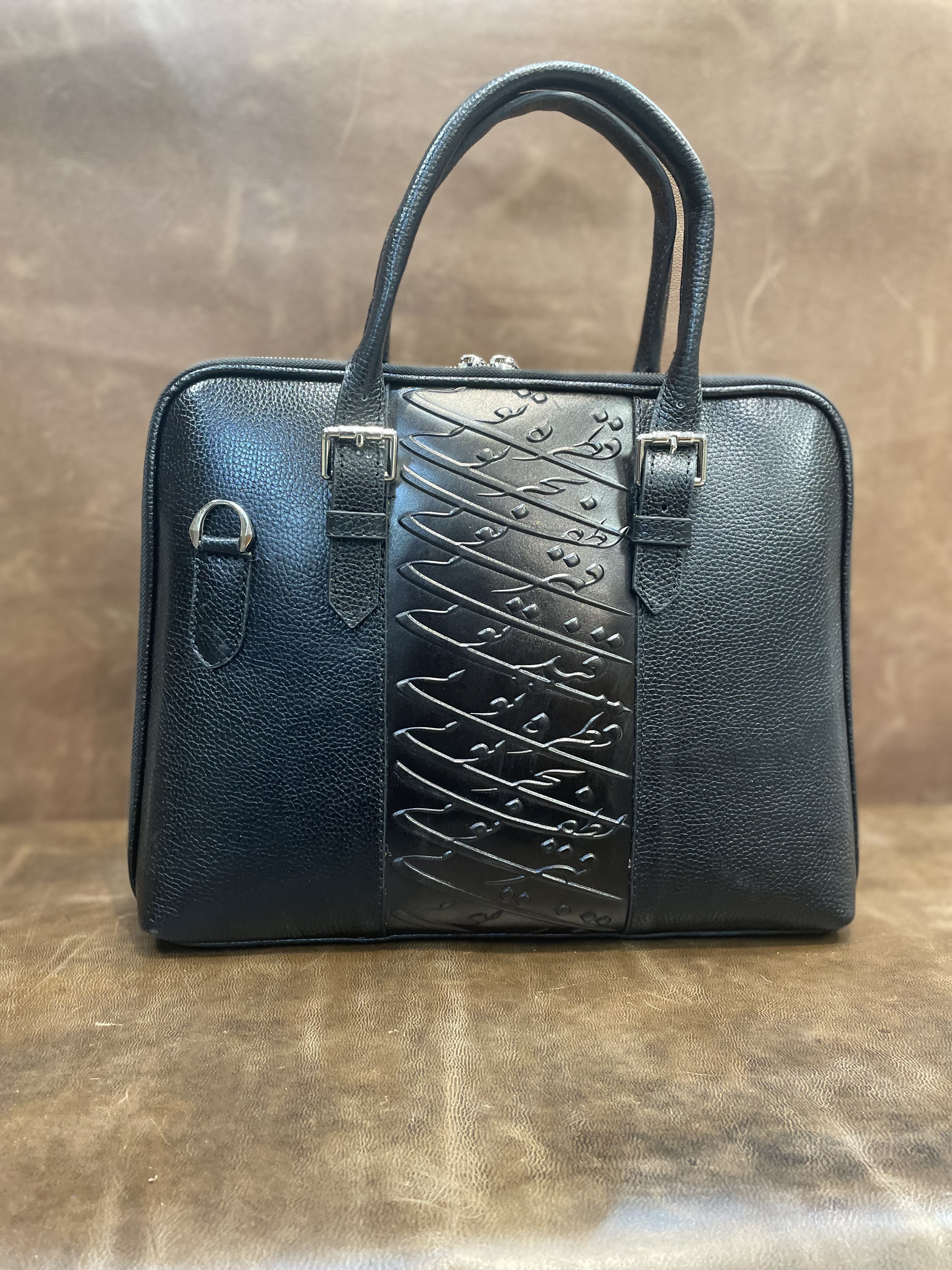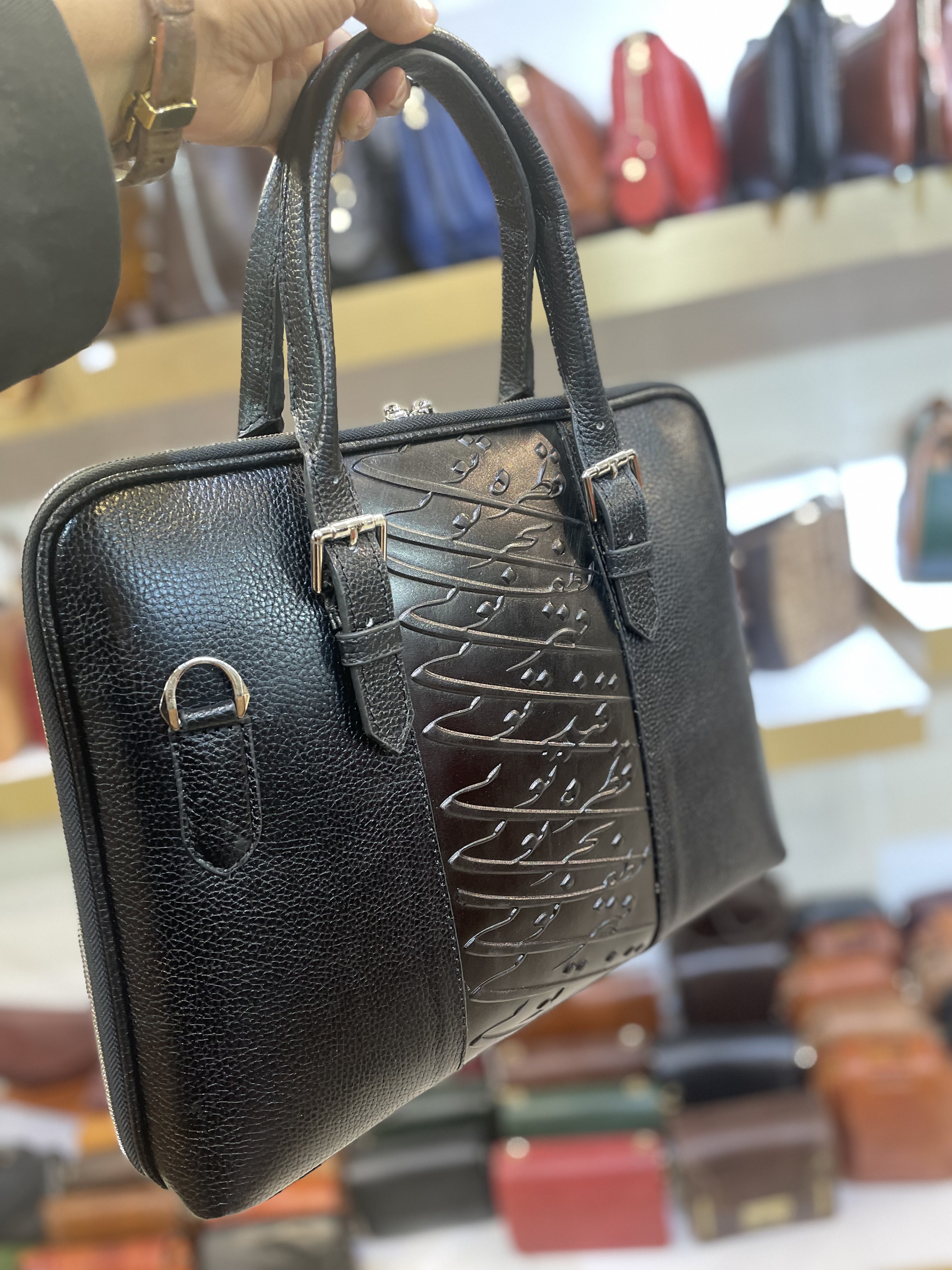 كيف اداري زنانه چرم ٤ سگك ، حكاكي شعر -چرم گاباي