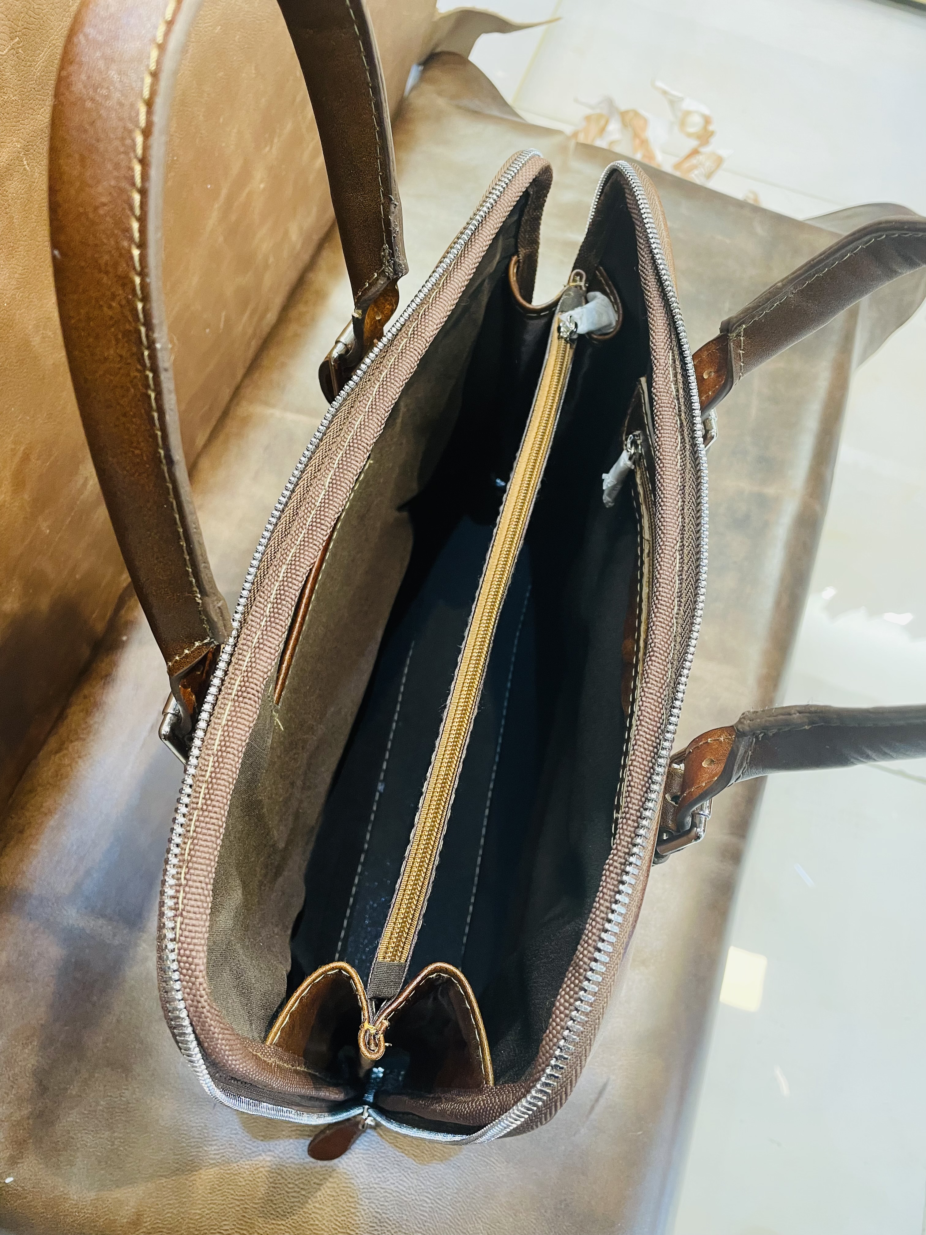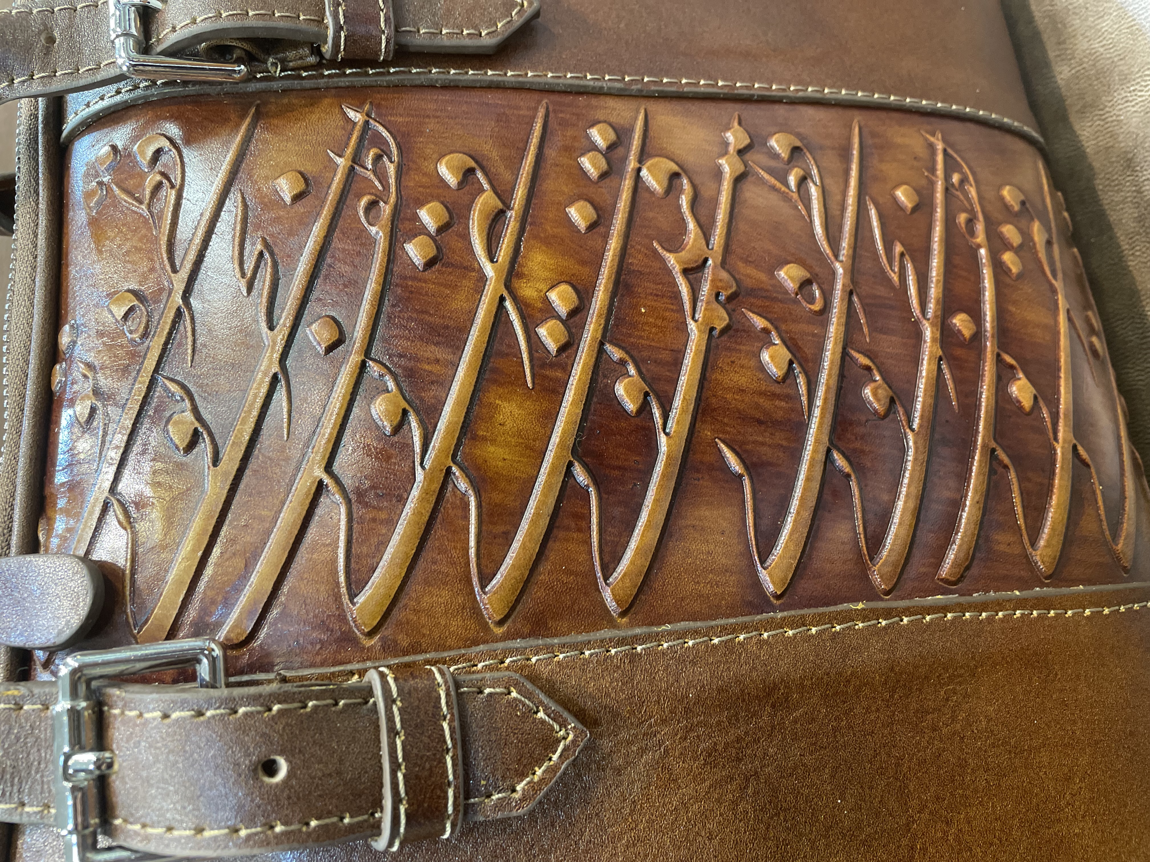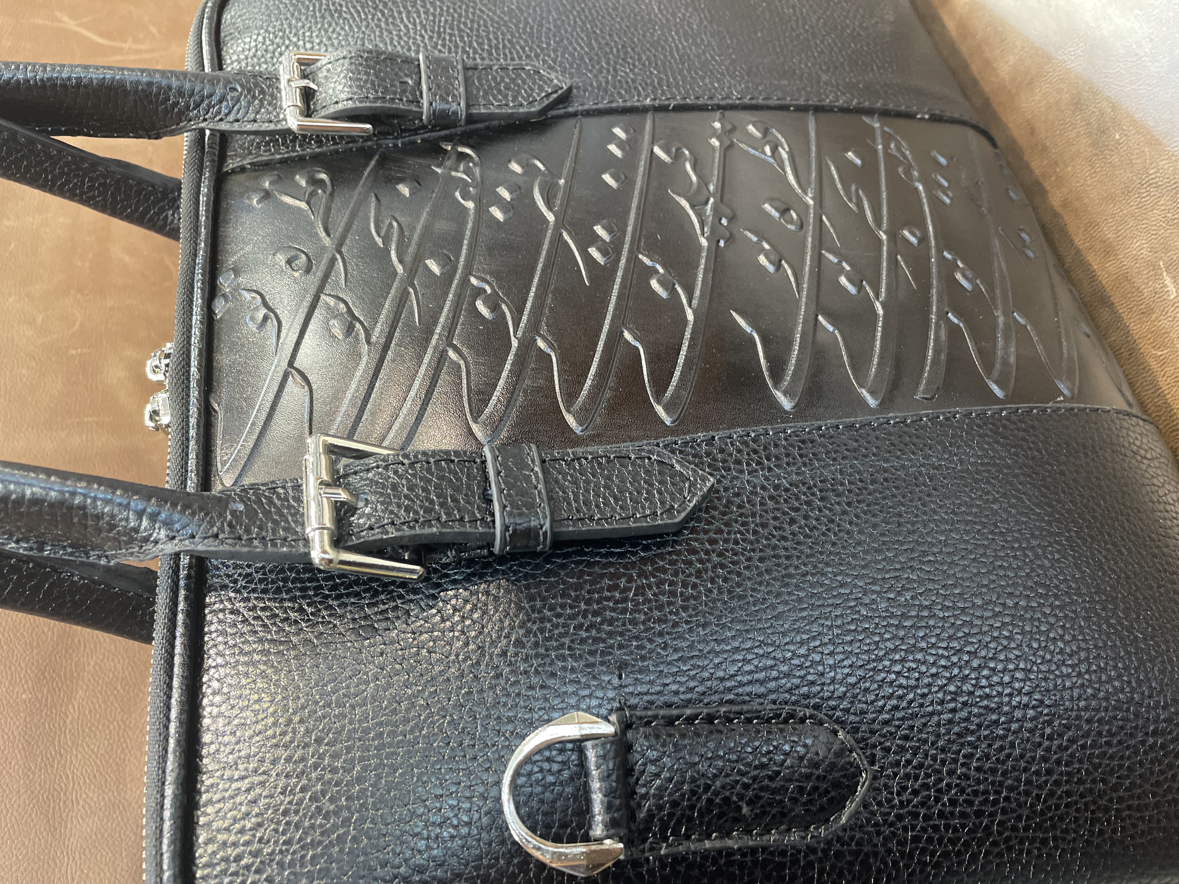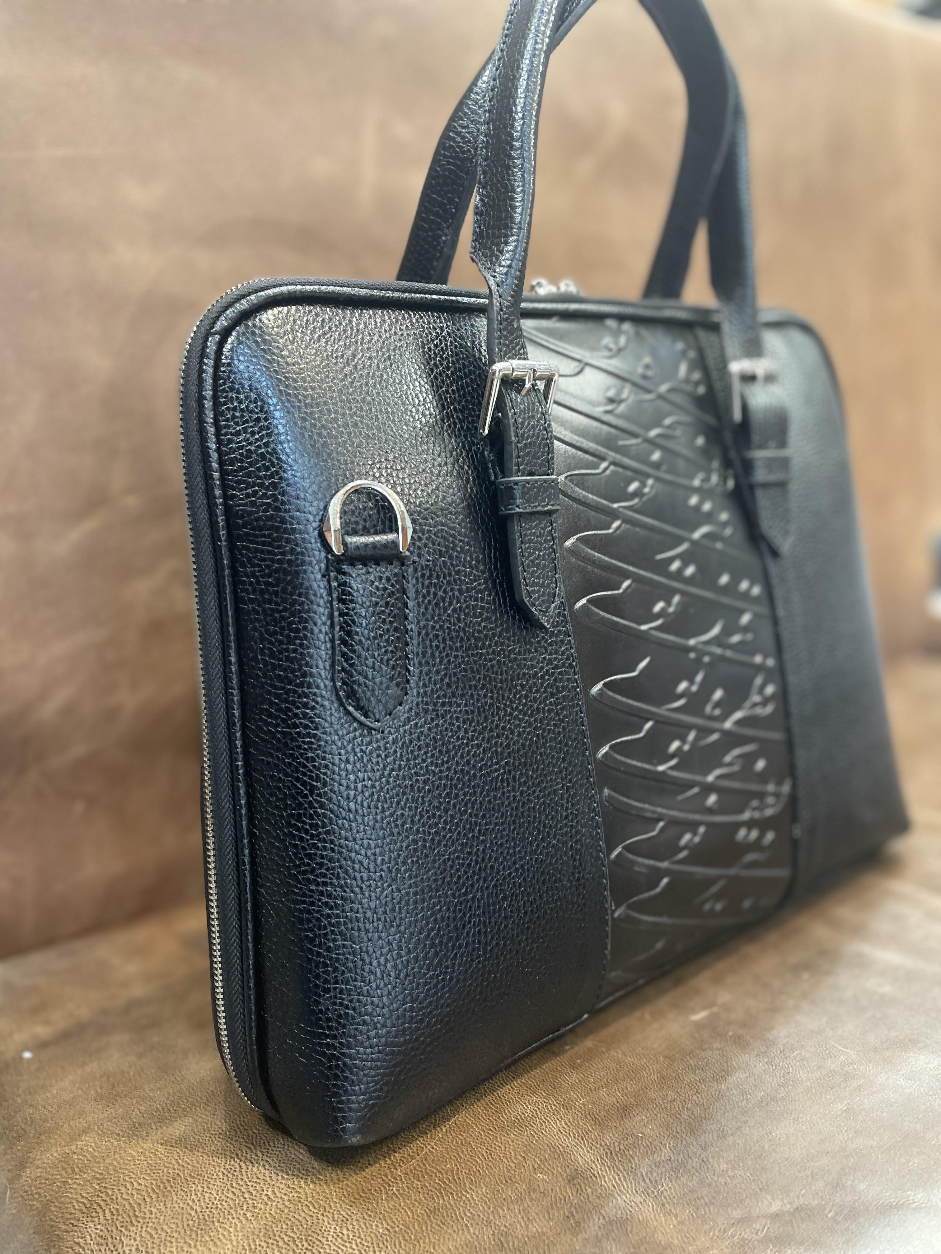 كيف اداري زنانه چرم ٤ سگك ، حكاكي شعر -چرم گاباي