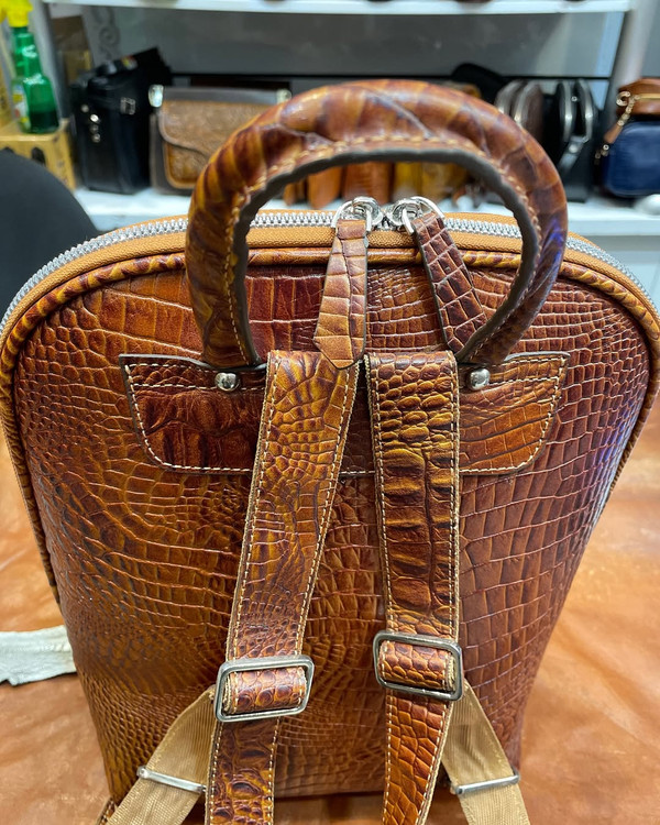 كوله پشتي تمام چرم طبيعي مدل تخم مرغي ،ابعاد : ارتفاع ٣٣ عرض ٢٧ و ضخامت ١٢ سانتيمتر ،داخل كيف داراي ۳ قسمت مجزا به همراه جيب و جاي كارت با ضمانت يكساله سفارشات عمده پذيرفته ميشود.