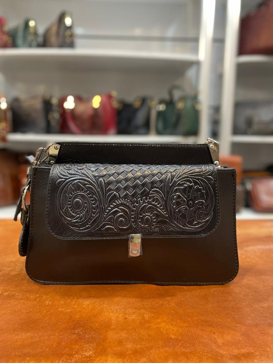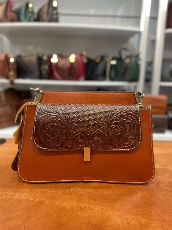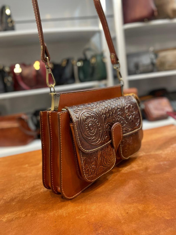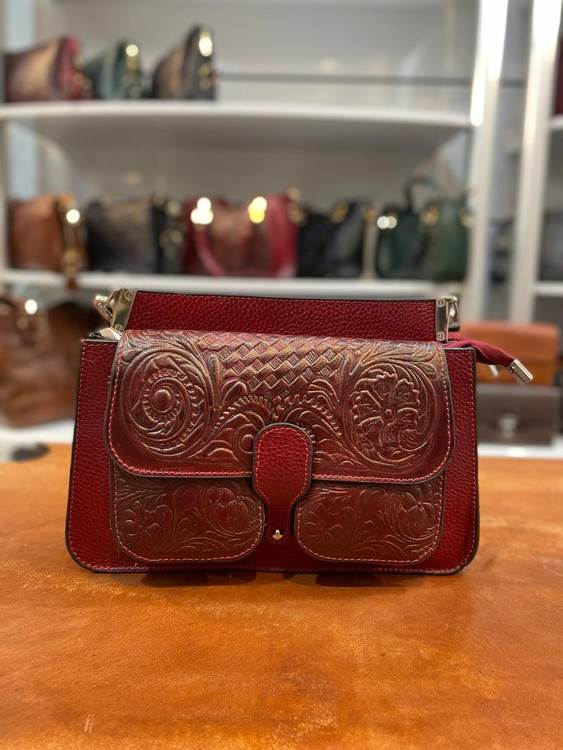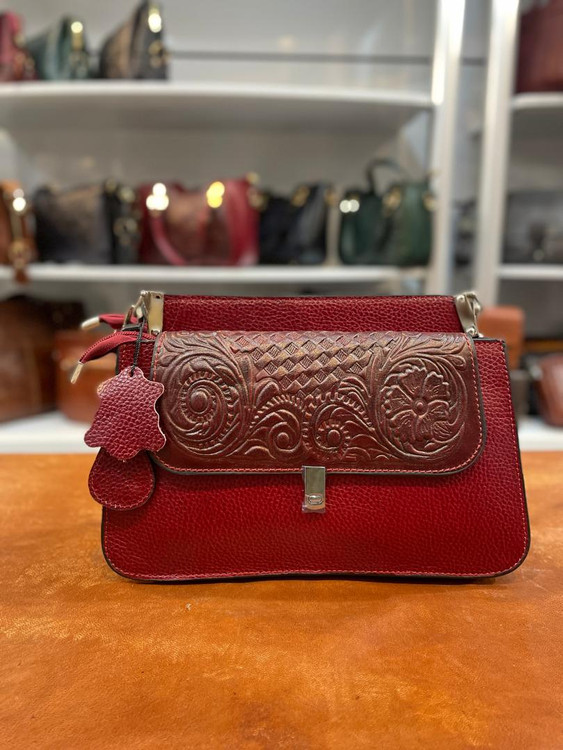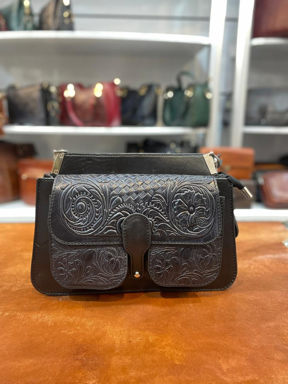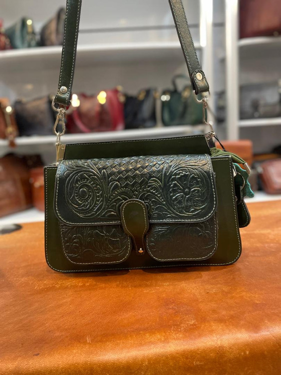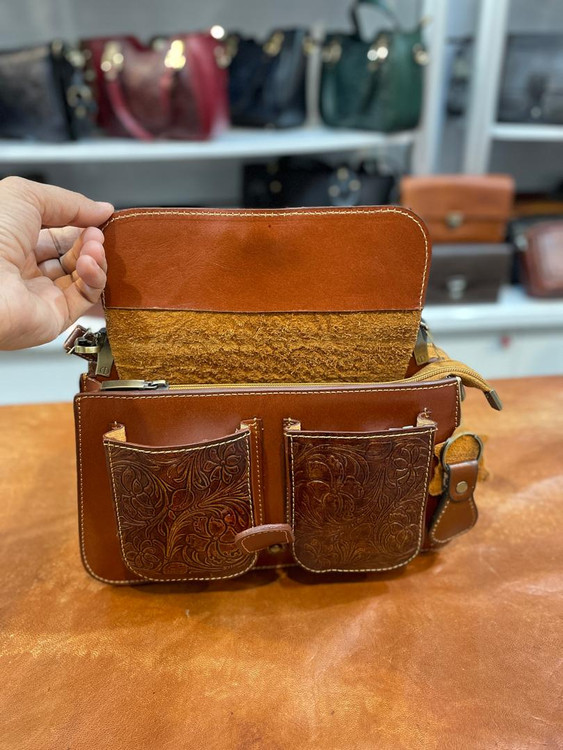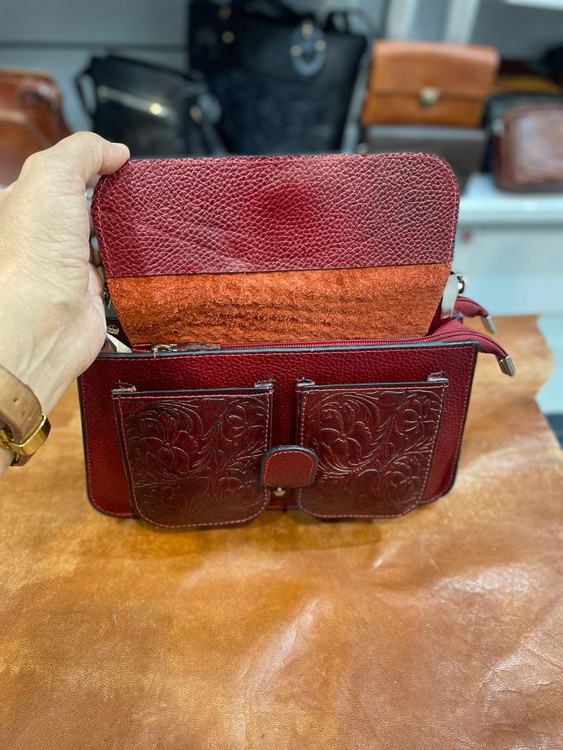 داراي بند دوشي بلند تمام چرم طبيعي حكاكي شده و دسترنگ، توليدي چرم گاباي سفارت عمده پذيرفته ميشود