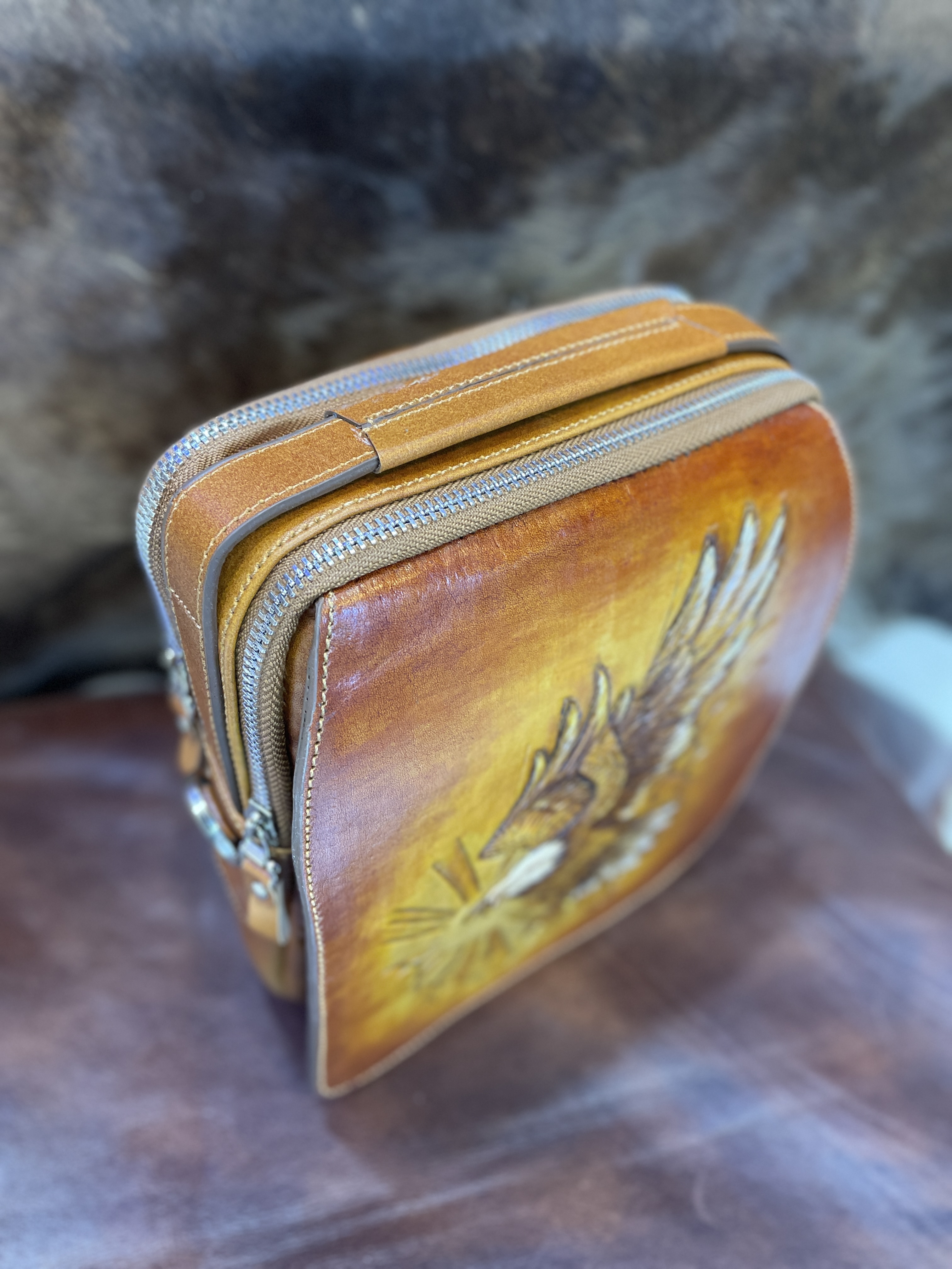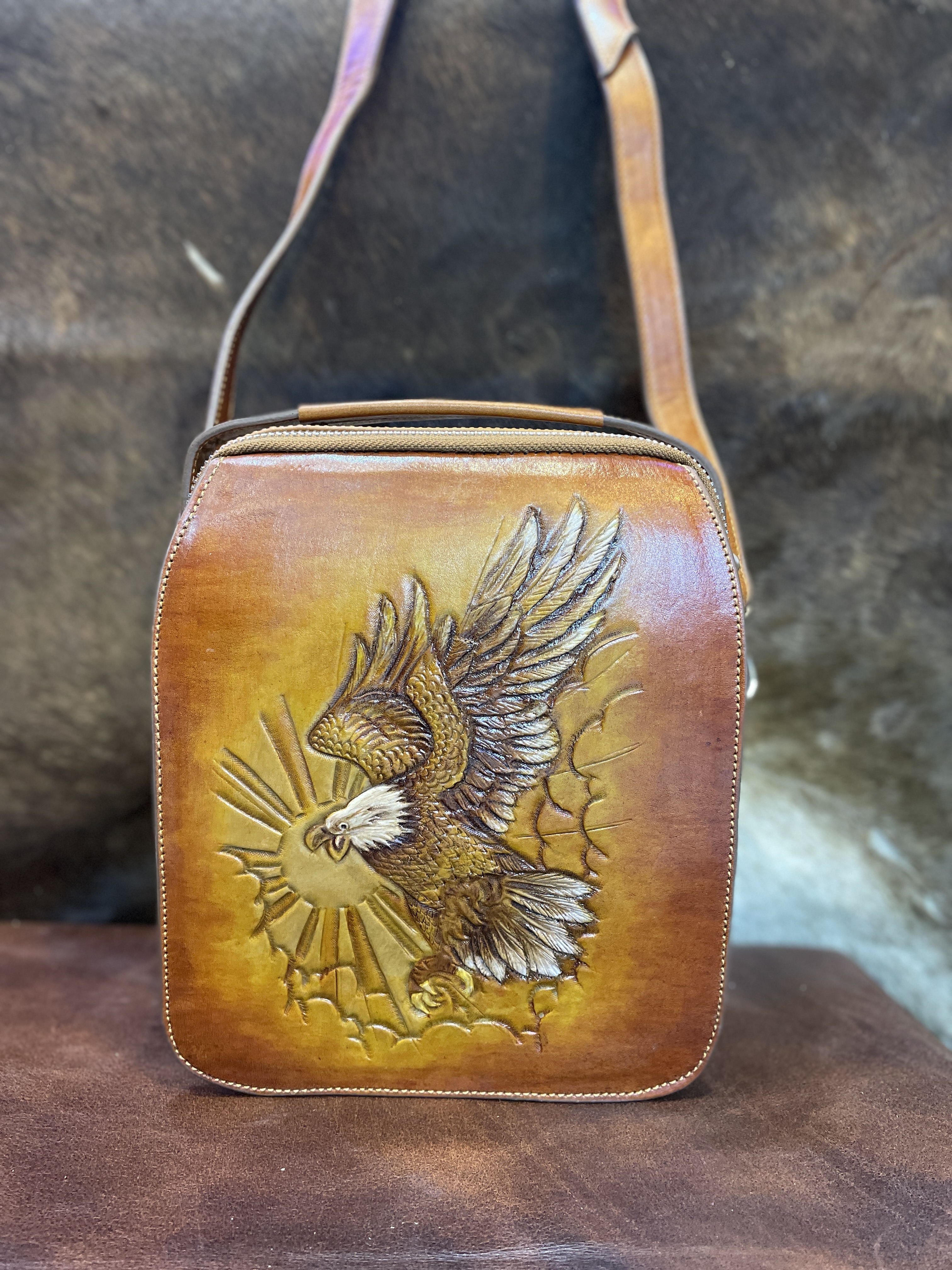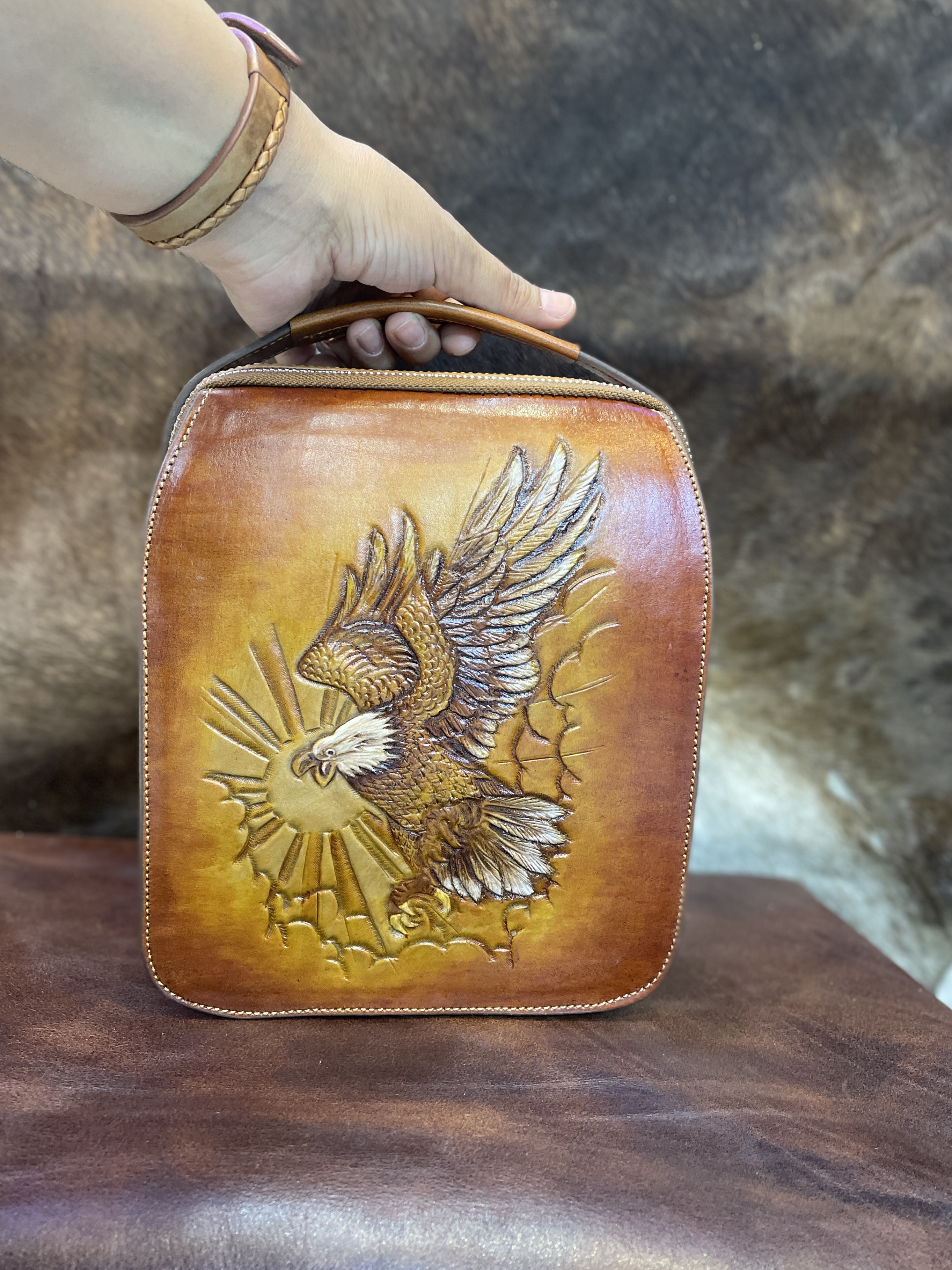 كيف دوشي چرمي مخصوص خاص پسندان با حكاكي طرح عقاب، داراي دو زيپ روي كيف، جاي موبايل و مدارك با ضمانت يكساله.