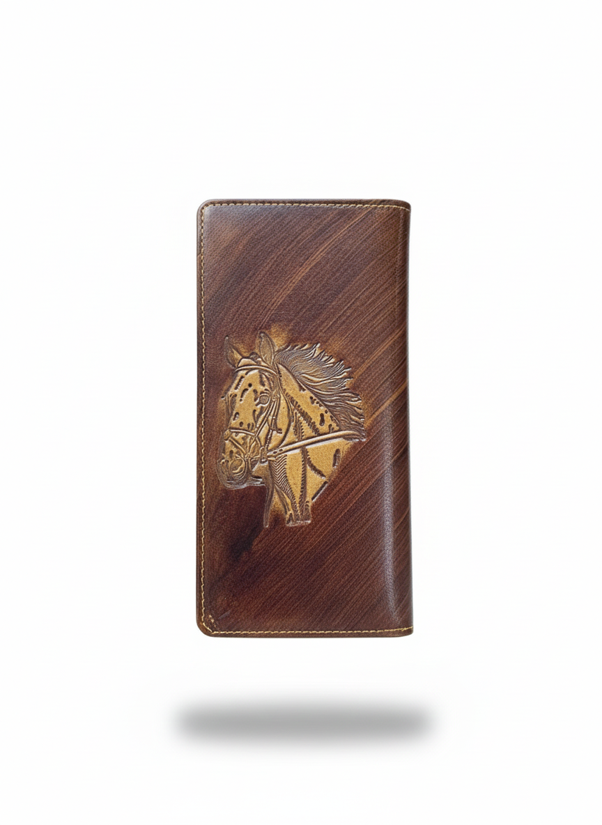کیف پول کتی چرم با حکاکی طرح اسب