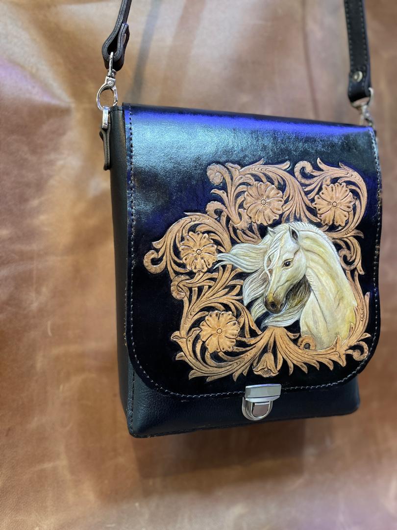 کیف دوشی با حکاکی طرح اسب-چرم گابای
