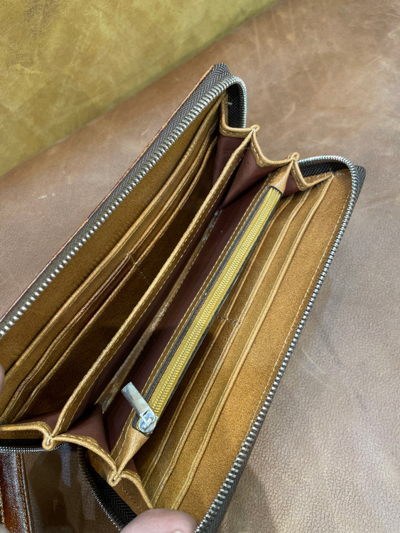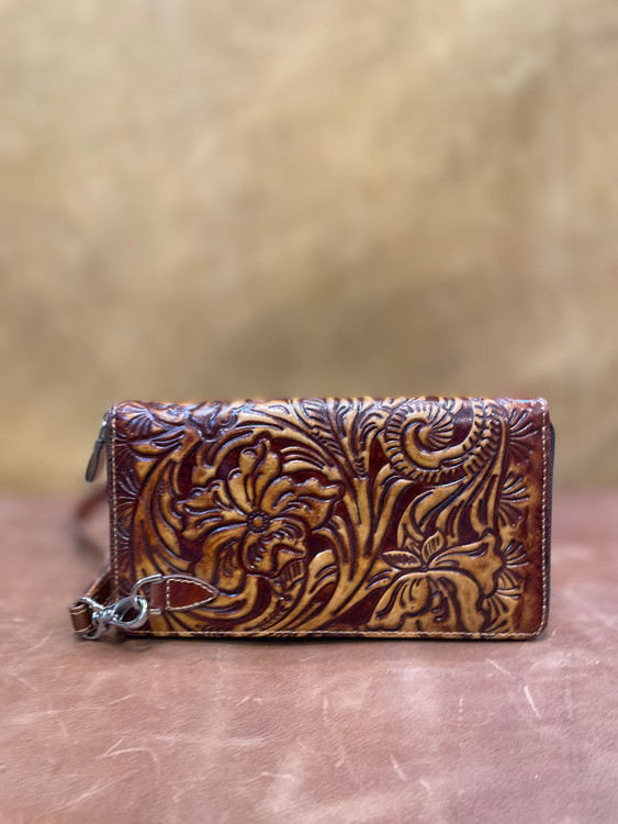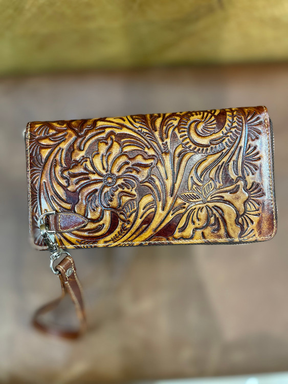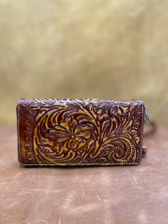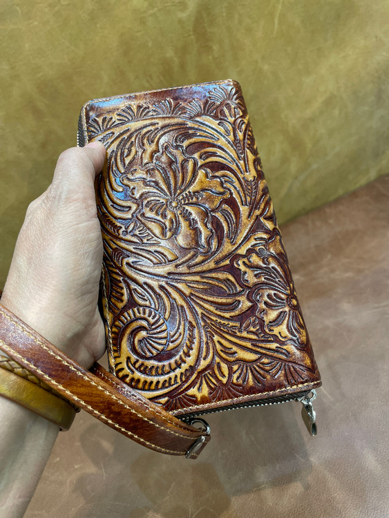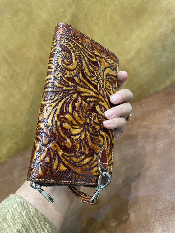 كيف پول دورزيپ حكاكي طرح گل ، تمام چرم طبيعي