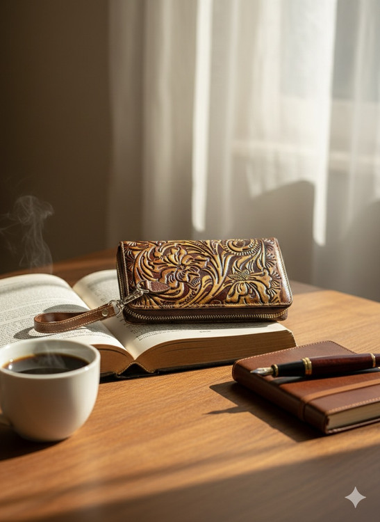 کیف پول زنانه حکاکی طرح گل