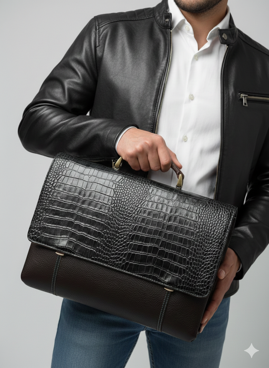 کیف اداری چرم طبیعی مردانه ترکیبی -چرم گابای